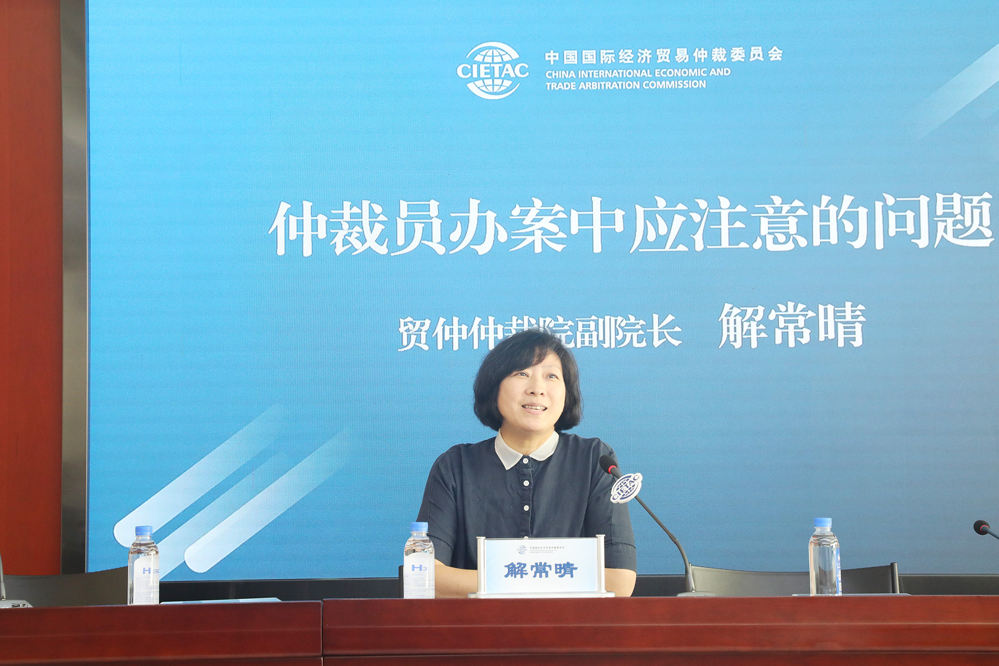 貿仲委仲裁院副院長解常晴以實際案例分析了仲裁員在辦案中可能遇到的各種突發(fā)情況及風險,提示仲裁員在辦案中應注意的各項問題和應對方法,強調了仲裁員應嚴守的職業(yè)操守和責任。
