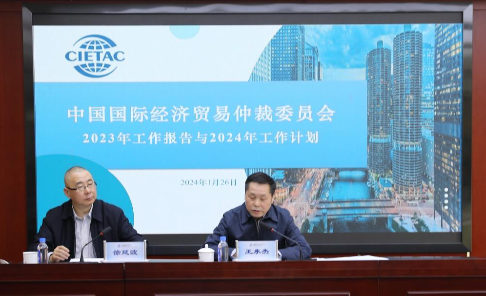 2024年1月26日下午,貿(mào)仲委2023年度干部職工總結(jié)大會在北京召開,貿(mào)仲委全體領(lǐng)導(dǎo)班子成員、總分會干部職工出席會議。會議全面回顧2023年工作成果,深刻分析當前形勢,謀劃部署2024年工作任務(wù)。貿(mào)仲委副主任兼秘書長王承杰作2023年工作總結(jié),貿(mào)仲委黨委書記徐延波主持會議。