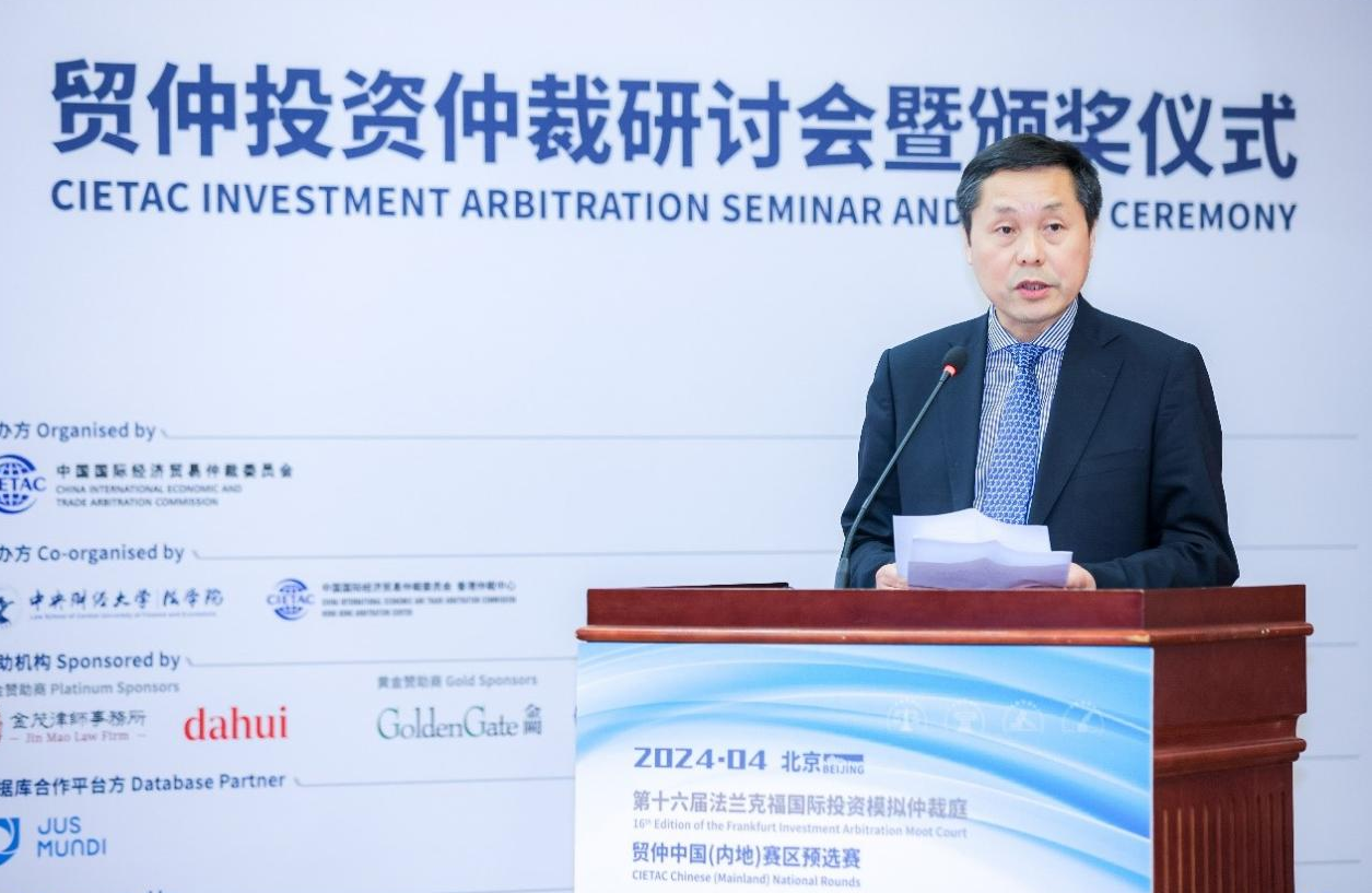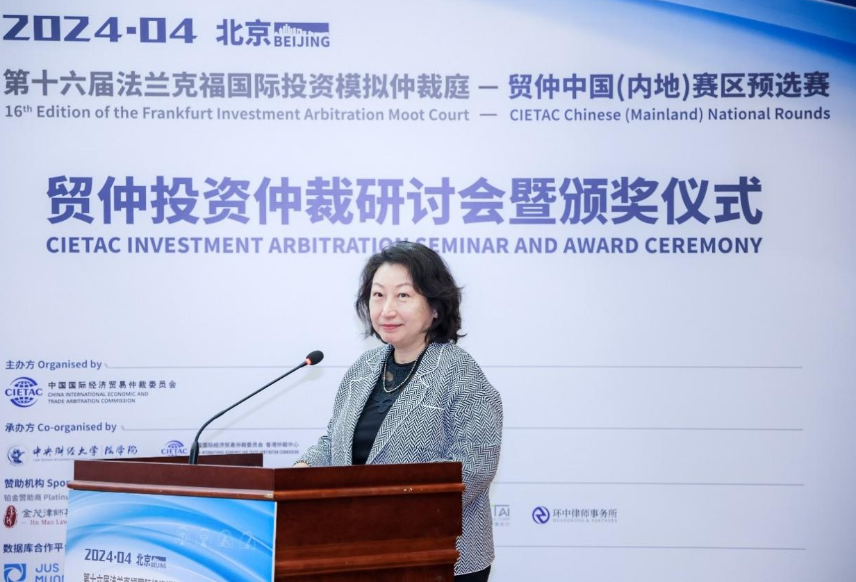 貿(mào)仲副主任兼秘書長王承杰、香港特別行政區(qū)政府律政司司長林定國、聯(lián)合國貿(mào)法會(huì)亞太區(qū)域中心主任Athita Komindr以及中央財(cái)經(jīng)大學(xué)副校長栗崢教授致辭并頒獎(jiǎng)。