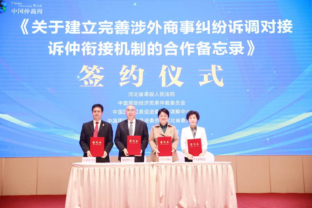 在合作協(xié)議簽署及發(fā)布儀式環(huán)節(jié),貿(mào)仲委與河北省高級人民法院、中國國際貿(mào)易促進委員會調(diào)解中心、中國國際貿(mào)易促進委員會河北省委員會就共建“涉外商事爭議訴調(diào)對接、訴仲銜接工作機制”“服務(wù)保障雄安新區(qū)及河北自貿(mào)試驗區(qū)建設(shè)機制”“涉外知識產(chǎn)權(quán)聯(lián)合保護機制”“共同推進法治化營商環(huán)境建設(shè)機制”簽署了《合作備忘錄》,意在為河北省引入國際先進仲裁、調(diào)解機構(gòu)服務(wù),便利當事人一站式爭議解決,各方合力,共同服務(wù)保障雄安新區(qū)及河北自貿(mào)試驗區(qū)建設(shè),優(yōu)化河北省營商環(huán)境。