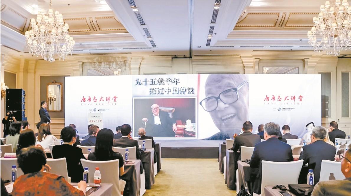 (圖為由中國國際經(jīng)濟貿(mào)易仲裁委員會舉辦的中國仲裁周第八屆唐厚志大講堂。)