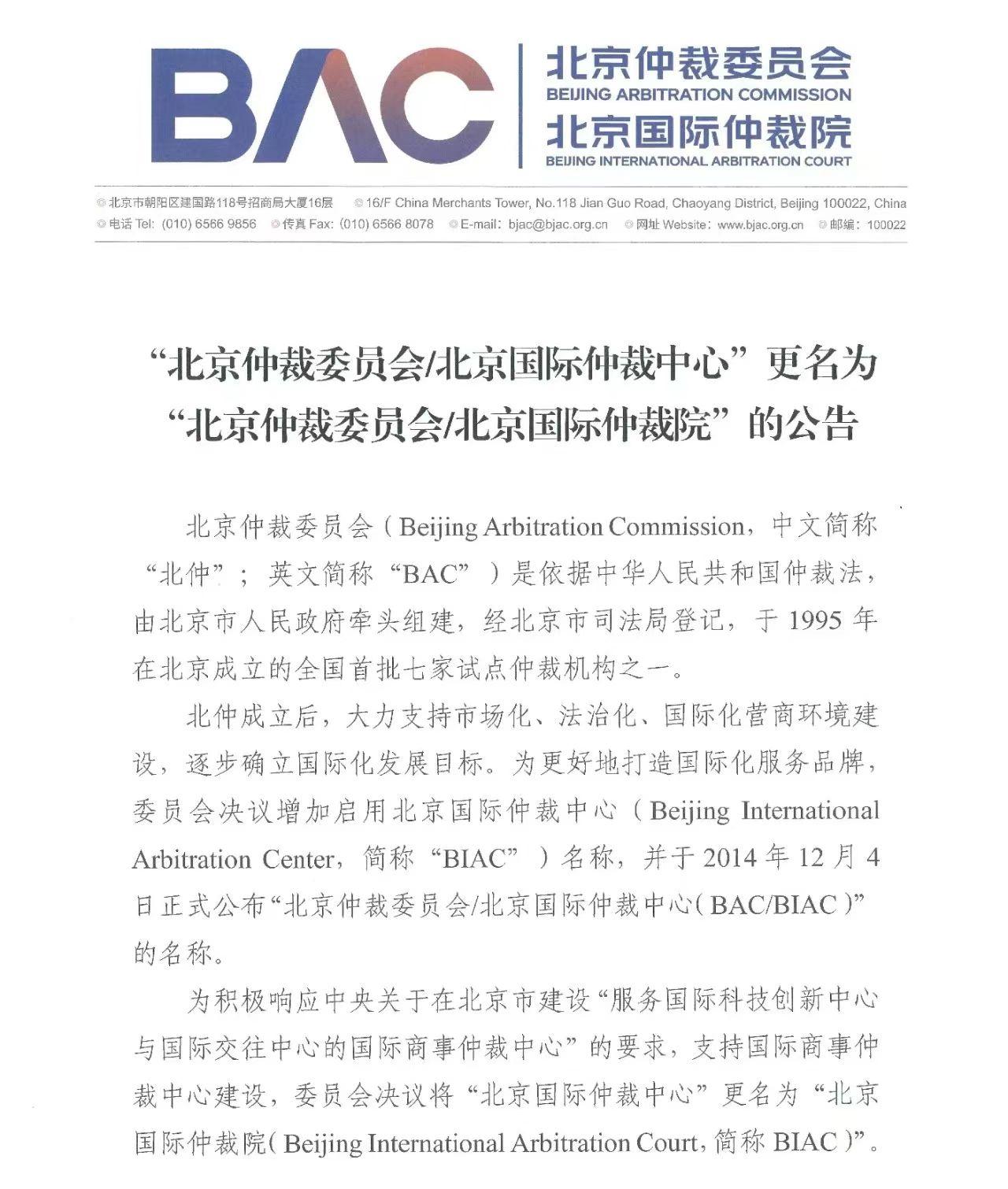 12月10日,記者從“建設(shè)國(guó)際一流仲裁機(jī)構(gòu) 助力國(guó)際商事仲裁中心建設(shè)”新聞發(fā)布會(huì)上獲悉,為積極響應(yīng)中央關(guān)于在北京市打造“服務(wù)國(guó)際科技創(chuàng)新中心與國(guó)際交往中心建設(shè)的國(guó)際商事仲裁中心”的要求,支持國(guó)際商事仲裁中心建設(shè),經(jīng)北京市司法局依法變更登記,12月4日“北京仲裁委員會(huì)/北京國(guó)際仲裁中心”的名稱變更為“北京仲裁委員會(huì)/北京國(guó)際仲裁院”(以下簡(jiǎn)稱北仲)。