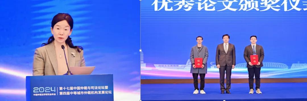 隨后進行的優(yōu)秀論文頒獎儀式上,中國政法大學民商經濟法學院黨委書記、中國仲裁法學研究會特聘副秘書長、常務理事楊秀清宣讀了優(yōu)秀論文獲獎名單。于健龍為一等獎獲得者謝林軒、宋奕辰頒發(fā)證書,兩位獲獎者分別就其論文內容進行了介紹。論壇研討環(huán)節(jié),近40名仲裁領域知名專家學者和實務界人士,圍繞“國際商事仲裁中心建設”“仲裁機構改革與公信力建設”“新技術新產業(yè)的機遇與挑戰(zhàn)”“仲裁司法審查的新動態(tài)”“如何提升仲裁案件辦理的質效”五項議題展開了熱烈研討。