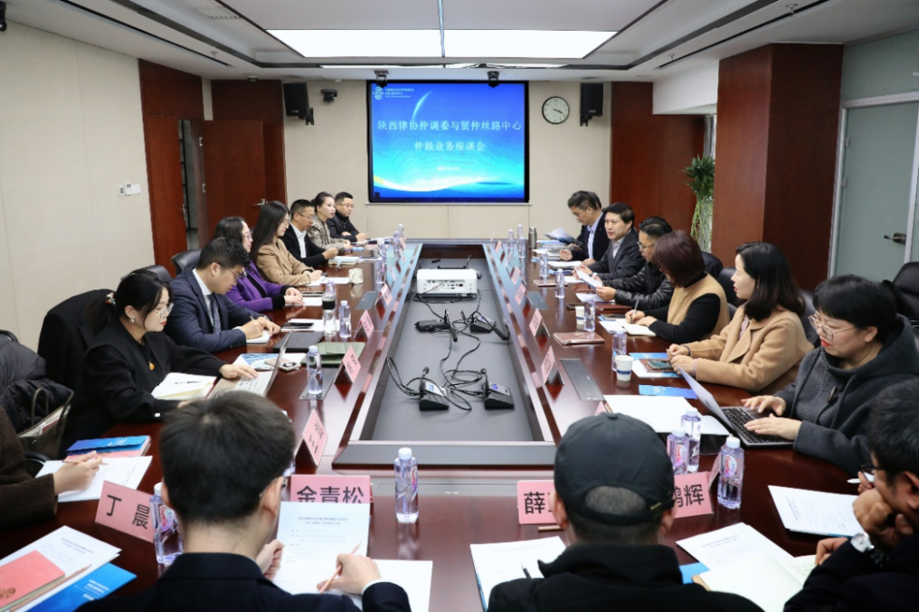 近日,陜西省律師協(xié)會仲裁及律師調(diào)解專業(yè)委員會(簡稱“陜西律協(xié)仲調(diào)委”)到訪中國國際經(jīng)濟(jì)貿(mào)易仲裁委員會絲綢之路仲裁中心(簡稱“貿(mào)仲絲路中心”)交流座談,貿(mào)仲絲路中心副秘書長蔣紅梅會見接待。陜西省律協(xié)副會長、仲調(diào)委會長閆玉新、主任劉彩玲、秘書長王毅等仲調(diào)委全體成員出席會議。