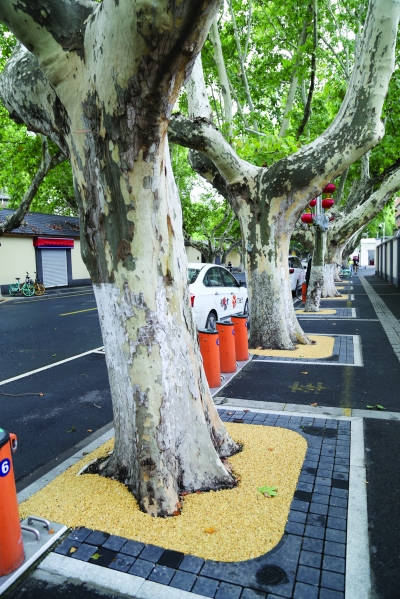 行道樹樹池一直有材質(zhì)雜亂、病害突出、保潔不易等問題,鼓樓城管在此次改革中對部分中心區(qū)域道路行道樹的樹池實施精品化提升試點(diǎn)工程,統(tǒng)一換成觀感好、會呼吸、易清掃的樹池。走在鼓樓湛江路上,路旁行道樹樹池以整齊的拼接蓋板、梅花形象的Logo、黑白相間的主色調(diào)亮相,這些更換一新的樹池不僅透水性強(qiáng)還大大提升了環(huán)境顏值。據(jù)介紹,截至目前,該區(qū)已完成19條道路、2404個樹池改造,眼下還在對8條道路和974個樹池進(jìn)行改造。