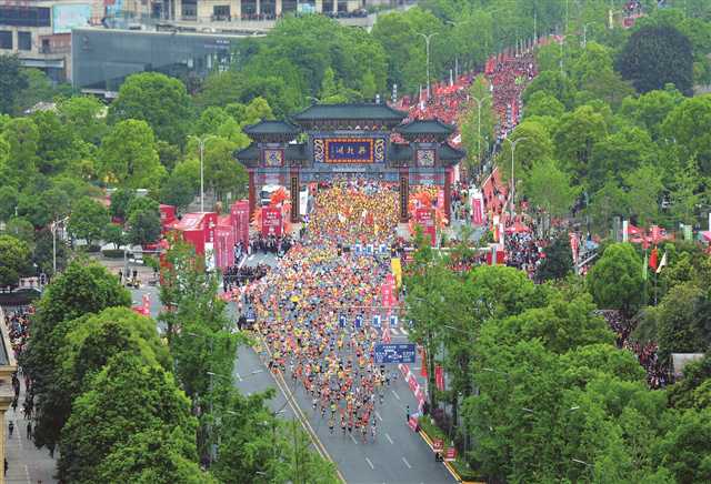 綠樹成蔭的人民大道舉行馬拉松比賽