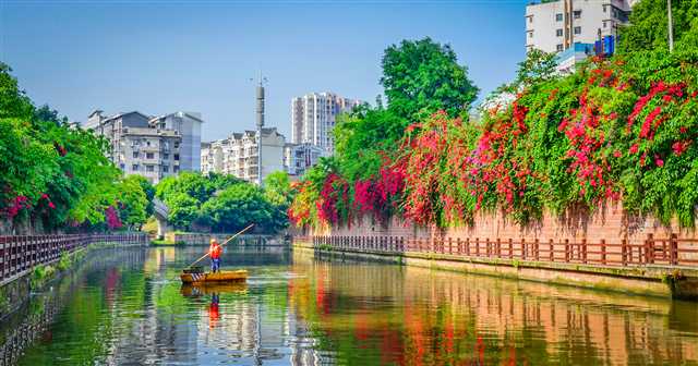 例如,新建臨江河濱水漫步道和城市道路綠道15.5公里;打造20公里鮮花大道,布置西洋鵑、仙客來、報春、一品紅等各類花卉300余萬盆;建設(shè)完成螞蝗橋交通島等7個“山城花境”;實施“坡坎崖”綠化美化地塊30余個;立體綠化美化沿街商業(yè)和居住小區(qū)2.2萬平方米;城市建設(shè)用地空地、城市邊角地、閑置地、臟亂地等實施自衍花卉種植,播撒花籽100余萬平方米。目前,正在加快建設(shè)跳蹬河、勝利河線型公園,打造生態(tài)、休閑、娛樂、健身等多功能為一體的城市“綠色長廊”。