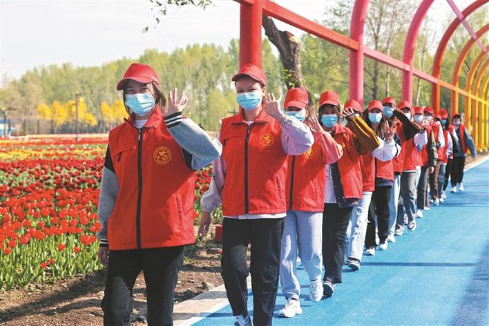 來自五家渠職業(yè)技術學校的志愿者在六師五家渠市青格達湖旅游風景區(qū)參加崗前培訓(資料圖片)。 兵團日報常駐記者 李華北 攝