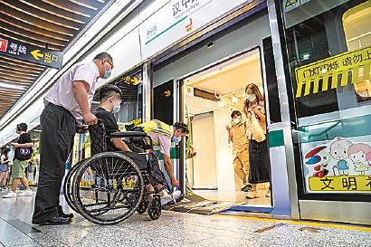 上海地鐵今年內(nèi)將在全網(wǎng)各站配置“無障礙渡板”,輔助使用輪椅及推嬰兒車的乘客上下列車。