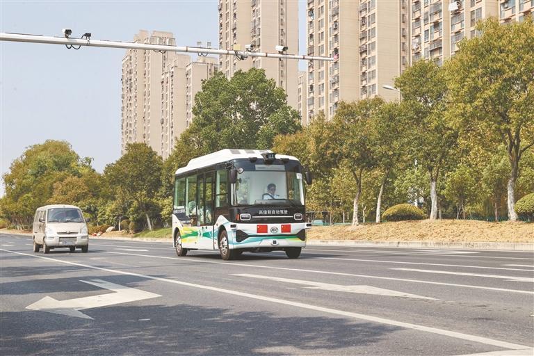 安徽首條5G+C-V2X自動(dòng)駕駛公交體驗(yàn)線“試跑”。王嫣然 攝
