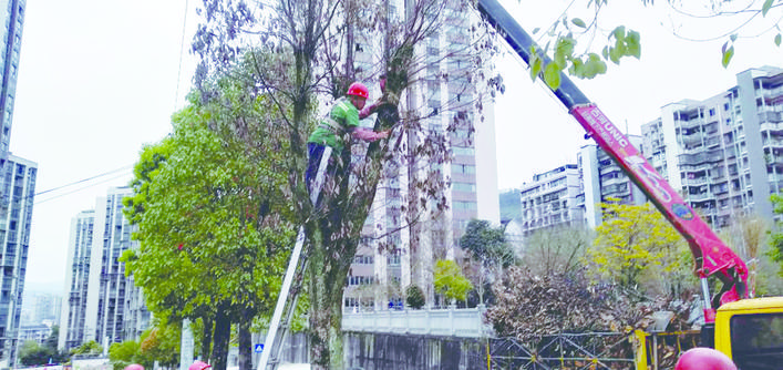 原來,位于枇杷坪青龍西路的水韻天成小區(qū)一直有個隱患,就是小區(qū)公路兩旁的部分行道樹枯萎傾斜,刮風(fēng)下雨時有倒伏傷人、砸壞車輛的風(fēng)險,居民為此憂心,于是向區(qū)城市管理局進(jìn)行反映。