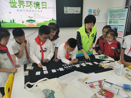 環(huán)保創(chuàng)業(yè)者盧慧迪用環(huán)保宣傳撲克給孩子們講垃圾分類常識(shí)。受訪者供圖