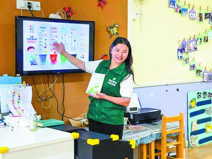 一件舊衣服、一張廢舊紙、一個(gè)舊輪胎……這些被扔掉的“垃圾”,在志愿者、雨花臺(tái)區(qū)家禾齊修幼兒園老師陳二麗以及孩子們的手中,就會(huì)變成一件件小工藝品。陳二麗始終認(rèn)為,家庭是幼兒生活的第一環(huán)境,對(duì)幼兒垃圾分類(lèi)習(xí)慣的養(yǎng)成具有重要作用。為讓家長(zhǎng)積極參與到垃圾分類(lèi)中,她通過(guò)晨間談話、家園欄、家委會(huì)以及垃圾分類(lèi)倡議宣誓等活動(dòng),激勵(lì)家長(zhǎng)自主參與到幼兒園垃圾分類(lèi)工作的策劃與宣傳中。她還通過(guò)“21天習(xí)慣打卡”引導(dǎo)孩子及家長(zhǎng)每日開(kāi)展垃圾分類(lèi)行動(dòng),從“知道”轉(zhuǎn)變成“習(xí)慣”。