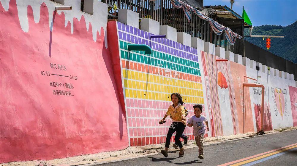 在西固區(qū)鄉(xiāng)村振興示范帶的馬家山村和關(guān)山森林公園廊道,一幅幅美麗的墻繪映入眼簾:放紙鳶的孩童、田地山水風(fēng)物、物質(zhì)文明和精神文明的宣傳標(biāo)語等元素,在藍(lán)天白云的映襯下恰如其分,格外親切。一旁便民攤售賣瓜果農(nóng)蔬的村民不禁贊嘆:“環(huán)境越來越好,生活越來越舒心了。”