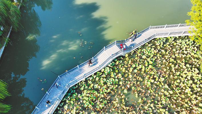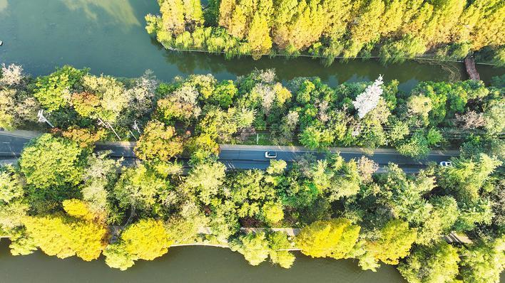 作為全國園林城市的合肥,環(huán)城公園宛如一條鑲嵌在城市中的翡翠項(xiàng)鏈。秋日,這里換上了華麗的盛裝。