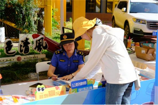 在游戲區(qū)旁,公職律師“駐攤問診”服務(wù)同步進(jìn)行。公職律師團(tuán)隊化身“法律顧問”,為市民提供零距離、一對一的法律咨詢,從物業(yè)糾紛調(diào)解到合同條款解析,以專業(yè)視角抽絲剝繭,為群眾排憂解難?!皡⒓訚h堡節(jié)還能解決我的法律困惑,省時又省心?!鼻皝碜稍兊纳虘衾钕壬锌?/p>
