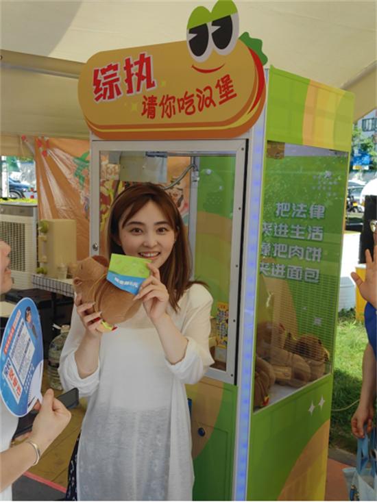 活動現(xiàn)場,該局東勝中隊“綜執(zhí)請你吃漢堡”主題攤位成為人氣焦點。執(zhí)法隊員以“攤主”身份精心設(shè)計“知識問答+潮玩互動+獎品兌換”的普法鏈條。參與者通過挑戰(zhàn)法律知識問答,贏取娃娃機(jī)游戲幣來抓取捆綁著漢堡兌換券的幸運玩偶,再在漢堡節(jié)上進(jìn)行任意兌換。這種將嚴(yán)肅法律條文轉(zhuǎn)化為趣味挑戰(zhàn)的“游戲化”普法模式,顛覆了傳統(tǒng)的單向宣傳方式,通過互動性與獲得感的雙重驅(qū)動,讓法律知識在歡聲笑語中沁入人心?!皼]想到普法還能這么玩!”市民項女士在成功兌換漢堡后笑言,“一邊學(xué)法一邊抓娃娃,最后還能享受美食,這知識‘漲’得也太值了!”