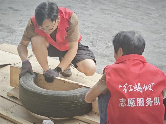 在集運基地的“卡娃一米園”內(nèi),兩個由舊輪胎做成的搖搖馬最近成了孩子們的新寵。而這個搖搖馬的制作者是流動黨員陳正明和他的同事們。他是一名集卡車維修師傅,每天在他們的維修點有大量的舊輪胎被換下來。在一次偶然的機會,他看到舊輪胎改造的視頻,就突發(fā)奇想,為卡娃們改了兩匹瑤瑤馬,還特別用心地刷上了孩子們喜歡的顏色。他說:“我天天和集卡車打交道,用舊物給孩子們改造,能讓他們更加理解爸爸們?!?/p>