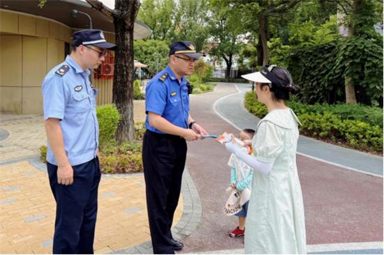 “寧波兒童公園、寧波海洋世界、萬悅集商圈距離近,并且都深受兒童游客的歡迎。尤其到了夏季,兒童游客流量激增,隨之而來存在著諸多安全隱患?!睎|柳中隊(duì)指導(dǎo)員婁天翔介紹,對此,中隊(duì)聯(lián)動三家單位建立應(yīng)急聯(lián)動工作群,發(fā)現(xiàn)問題及時(shí)聯(lián)動處置,避免因區(qū)域分隔而導(dǎo)致信息不暢、執(zhí)法滯緩的情況發(fā)生。同時(shí),重點(diǎn)針對兒童公園及周邊不文明養(yǎng)犬以及非機(jī)動車違停、無證攤販、易爆危險(xiǎn)氣體充制等問題,定期開展無人機(jī)“巡航”,并聯(lián)合共建單位建立早晚時(shí)段聯(lián)合巡查機(jī)制,加大公園水域等區(qū)域的巡查力度,持續(xù)鞏固市容秩序管控成效、強(qiáng)化夏季兒童游客安全保障,累計(jì)引導(dǎo)規(guī)范共享單車停放230余輛,處置未系犬鏈行為16起。