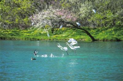 水質(zhì)澄澈,是河流的靈魂。曾幾何時,汾河蒙塵。而今,清流滌蕩污濁,終于喚醒了沉睡的見證者——被譽(yù)為“活體水質(zhì)檢測器”的桃花水母,在四期水域輕盈旋舞,近乎透明的傘蓋如精靈般浮動。清波之下,是萬物生長的秘境;碧水之上,是羽翼的樂園。天鵝、白鷺、蒼鷺、斑嘴鴨……上百種鳥兒于此棲息,它們翅膀的每一次扇動,都是對汾河生態(tài)最真實(shí)的肯定。騎行者在綠道上飛馳,身影融入兩岸的錦繡;游人漫步木棧道,步伐隱沒在流動的詩意里;沿岸居民推窗見綠,汾河終于找回了它清亮的歌喉。