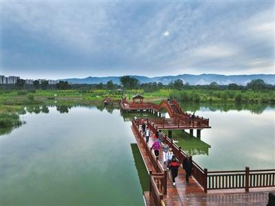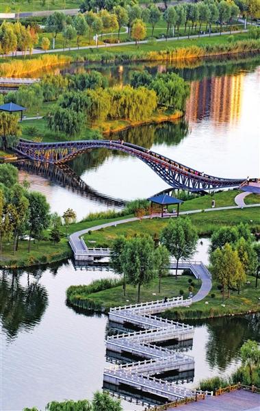 風(fēng)光旖旎,是河流的容顏。順流而下,汾河四期如一幅水墨長卷在城北徐徐鋪展。雁丘園內(nèi),當(dāng)年元好問筆下“問世間、情是何物”的慨嘆,如今沉淀為濕地間婉轉(zhuǎn)的鳥鳴與蘆葦迷宮的低語。流水潺潺,棧道曲折,每一處彎折都藏著靜謐的驚喜。再往前行,豁然開朗處,“小三亞”的金色沙灘在陽光下閃耀,孩子們追逐嬉戲,帳篷如花朵點(diǎn)綴在碧水金沙之畔,城市人心中向往的“遠(yuǎn)方”觸手可及。