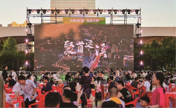 大屏幕前,人潮涌動(dòng),歡呼聲響徹云霄,在無錫江南古運(yùn)河畔,“蘇超”“第二現(xiàn)場”上演著堪比賽場的狂熱。“蘇超”的爆火,讓這個(gè)夏天格外熱鬧,梁溪多處化身足球狂歡勝地,惠山映月里祠田廣場、運(yùn)河匯水上舞臺(tái)、崇安寺二泉映月廣場、清名橋廣場……市民游客在大屏前暢聊戰(zhàn)術(shù),燒烤、啤酒、小龍蝦、各色小吃琳瑯滿目,夜色之下,巨幕與美食繪就動(dòng)感十足的消費(fèi)熱力圖。