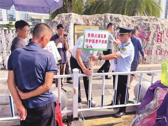 為防止問(wèn)題反彈,秀英分局打出“組合拳”,協(xié)調(diào)院方增設(shè)物理隔離欄,優(yōu)化人車分流通道,并安排人員定人定崗值守,整治工作取得明顯成效。