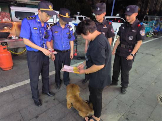 此次專(zhuān)項(xiàng)檢查重點(diǎn)覆蓋轄區(qū)內(nèi)的餐飲店鋪、夜宵城及周邊小區(qū),執(zhí)法人員圍繞商戶(hù)燃?xì)饧霸罹叩囊?guī)范使用、餐飲環(huán)境衛(wèi)生、食品安全、消防安全以及居民文明養(yǎng)犬等方面,進(jìn)行了全面細(xì)致的排查。在澥浦夜宵城檢查時(shí),發(fā)現(xiàn)部分商戶(hù)存在燃?xì)馄窟^(guò)期的現(xiàn)象。對(duì)此,執(zhí)法人員一方面指導(dǎo)商戶(hù)整改違規(guī)用氣行為,同步開(kāi)展燃?xì)獍踩褂眯麄?;另一方面結(jié)合商戶(hù)經(jīng)營(yíng)需求,第一時(shí)間聯(lián)系美氣多公司到場(chǎng),協(xié)助商戶(hù)現(xiàn)場(chǎng)辦理開(kāi)戶(hù),并指導(dǎo)其通過(guò)官方電話、企業(yè)微信公眾號(hào)等正規(guī)渠道訂氣,從源頭上杜絕“黑氣”流通。這種集安全宣教、整改指導(dǎo)與現(xiàn)場(chǎng)服務(wù)于一體的方式,讓商戶(hù)切實(shí)感受到執(zhí)法的溫度,也提升了對(duì)服務(wù)式執(zhí)法的認(rèn)可。同時(shí),執(zhí)法人員對(duì)小區(qū)周邊進(jìn)行犬類(lèi)集中整治,因夏季遛狗居民較多,執(zhí)法人員提醒養(yǎng)犬居民文明養(yǎng)犬,謹(jǐn)防犬類(lèi)傷人事件發(fā)生。