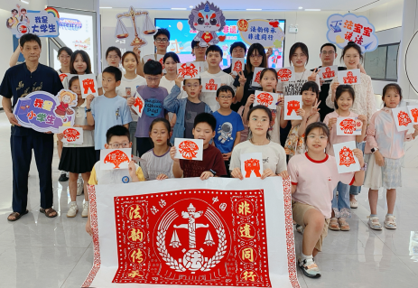 “法官教我怎么當(dāng)小法官,我還學(xué)會了剪‘法’字剪紙!原來法律可以這么有趣!”9歲的小學(xué)生蔡以諾在陳士海老師和大學(xué)生志愿者的指導(dǎo)下,順利將“守法”二字剪了出來。