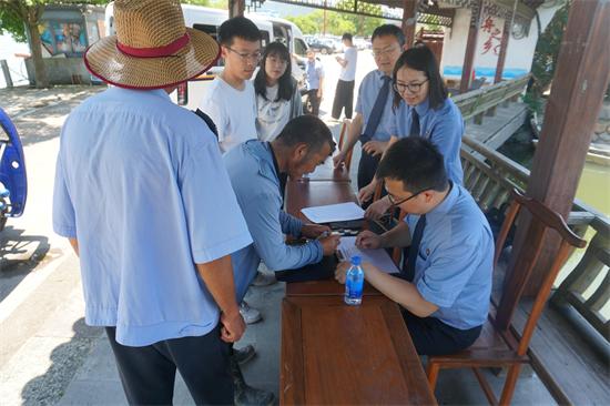 圖為陶公村村民登記信息領(lǐng)取福壽螺卵收購(gòu)款