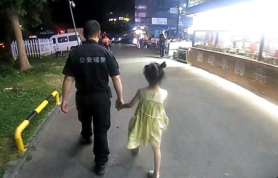 “小寶貝你多大啦?”“是在樓上吃還是在樓下吃的???”一路上,張龍牽著小女孩的手,邊走邊聊,耐心的話語和掌心的溫度,讓小女孩緊繃的小臉逐漸放松下來。同時,張龍在兩人的對話中迅速提取有效信息。長長的街巷,大手牽小手的兩個身影在路燈下緩緩前行。