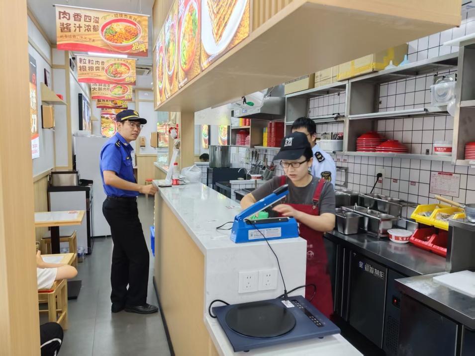 食安“加碼”,守護(hù)舌尖上的安心?!安惋嫷耆?xì)鈭?bào)警器是否正常運(yùn)行?油煙凈化器清洗的臺(tái)賬是否齊全?”聚焦開學(xué)季師生就餐需求,執(zhí)法人員帶著“一店通查”清單,對(duì)高校周邊20余家餐飲店開展“全覆蓋”檢查。檢查以燃?xì)獍踩珵楹诵?,?yán)格核對(duì)鋼瓶實(shí)名制信息,排查灶具、減壓閥隱患,確保燃?xì)鈭?bào)警器處于正常使用狀態(tài);同步嚴(yán)查跨門經(jīng)營(yíng)、垃圾分類混投等問題,督促商戶落實(shí)“門前三包”責(zé)任,對(duì)兩家存在隱患的店鋪現(xiàn)場(chǎng)下達(dá)整改通知書,要求限期整改。