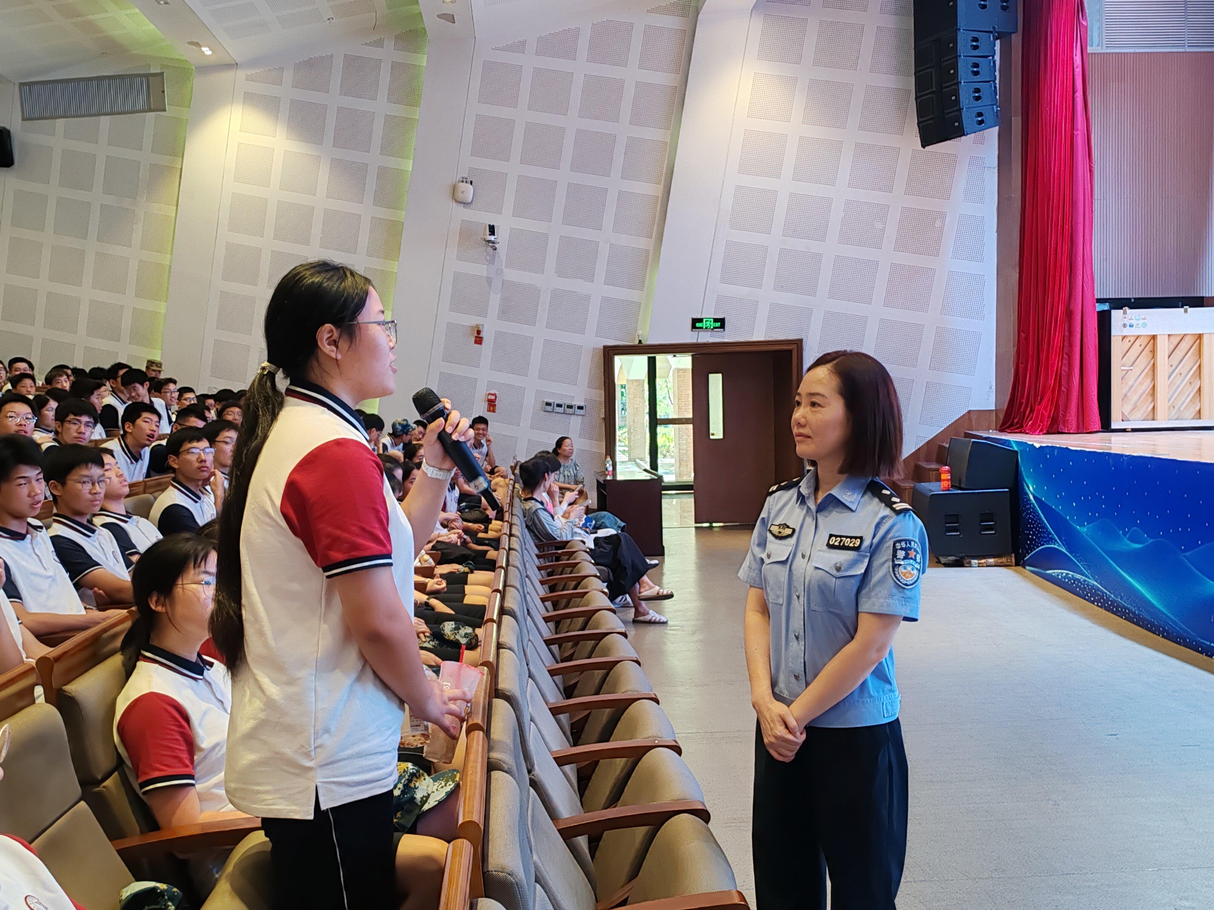 新學(xué)年啟幕,當青春與法治相遇,當安全與成長同行,浙江省寧波市公安局鄞州分局下應(yīng)派出所攜手鄞州中學(xué)以一場別開生面的“開學(xué)第一課”點亮校園安全之光。8月20日下午,下應(yīng)派出所“Madam來了”志愿團團長、民警董黎娜化身“安全導(dǎo)師”走進校園,以反詐、防溺水、防校園欺凌三大主題為畫筆,為全校師生勾勒出一幅“平安成長路線圖”,讓法治意識與安全技能如種子般扎根在青少年心田。