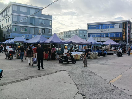 9月3日凌晨3點(diǎn)的浙江省象山縣定塘鎮(zhèn),中心菜場西側(cè)的路燈在薄霧中暈開暖黃的光。每個(gè)月9次,雷打不動(dòng)的農(nóng)貿(mào)集市在此準(zhǔn)時(shí)開張。蔬菜區(qū)的塑料筐碰撞聲、水產(chǎn)區(qū)的氧氣泵嗡鳴聲、服裝區(qū)的金屬清脆摩擦聲,共同編織成小鎮(zhèn)的晨光序曲。