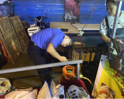 執(zhí)法人員來到港道路、中官路等夜市集中經(jīng)營點,建立“一攤一檔”安全臺賬,對使用燃?xì)獾纳虘暨M(jìn)行全覆蓋檢查。過程中,執(zhí)法人員重點對夜市區(qū)域內(nèi)液化氣瓶是否具有年檢標(biāo)識、液壓閥的老舊程度、輸氣膠管的老化程度、滅火器是否合理配備和擺放等情況進(jìn)行詳細(xì)檢查。