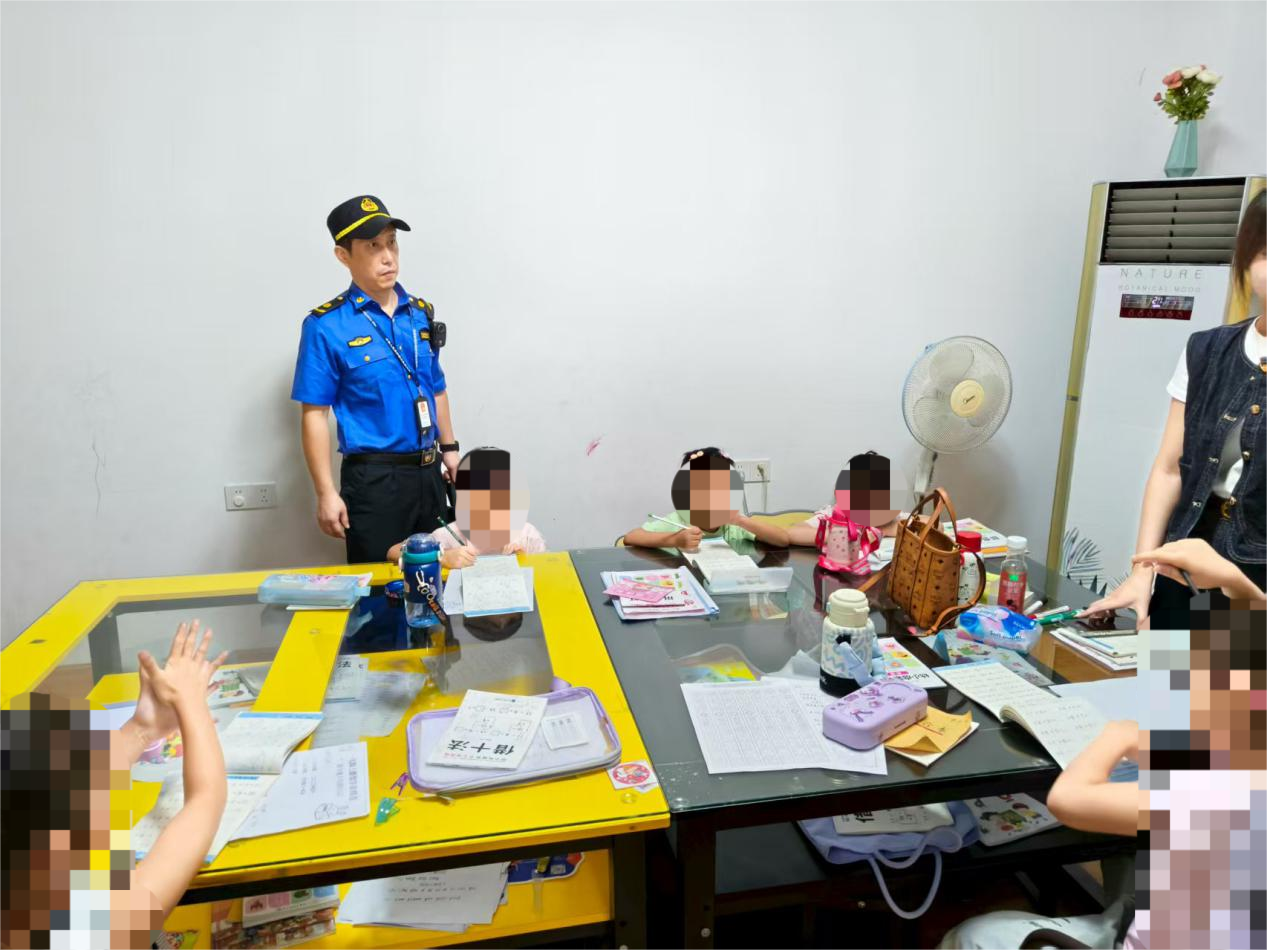 當(dāng)日,執(zhí)法人員在岳林街道力邦廣場(chǎng)檢查時(shí),發(fā)現(xiàn)原本登記主營“中學(xué)生校外托管服務(wù)”的某機(jī)構(gòu)教室里,5名幼兒正跟著老師學(xué)習(xí)小學(xué)數(shù)學(xué)課程。經(jīng)查,該機(jī)構(gòu)不僅未取得辦學(xué)許可證,授課教師也無法提供教師資格證,屬于典型的“無證辦學(xué)+無資質(zhì)教學(xué)”雙重違規(guī)。執(zhí)法人員當(dāng)即向機(jī)構(gòu)負(fù)責(zé)人下發(fā)《停業(yè)整改通知書》,要求其立即停止所有違規(guī)培訓(xùn)活動(dòng)。