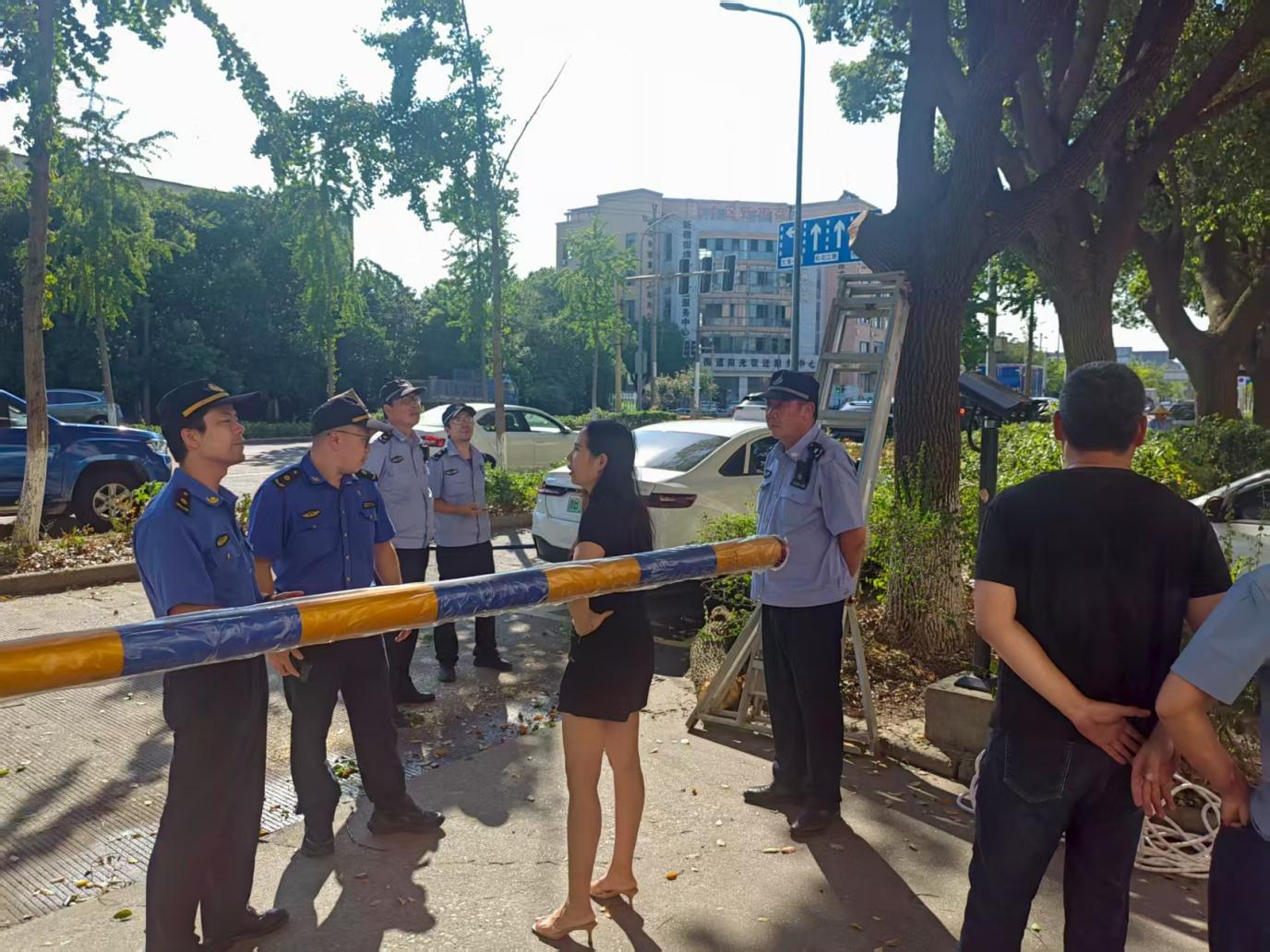 在處理過程中,執(zhí)法人員并未簡單“一罰了之”。考慮到酒店對樹木遮擋問題的迫切需求,隊(duì)員當(dāng)即決定啟動(dòng)“馬路辦公”,將市政綠化部門工作人員、酒店負(fù)責(zé)人召集到現(xiàn)場,三方圍坐展開協(xié)商?!爸苯涌硺浯_實(shí)不對,但樹枝擋著門牌,客人都找不到店,我們也著急?!本频昕偨?jīng)理任女士再次表達(dá)了難處。市政部門工作人員則現(xiàn)場勘查樹木生長情況,提出解決方案:“這幾棵香樟樹是重要的行道綠化,完全砍伐很可惜,我們可以通過專業(yè)修剪,保留主干與健康枝條,既解決遮擋問題,又能維持綠化效果。”