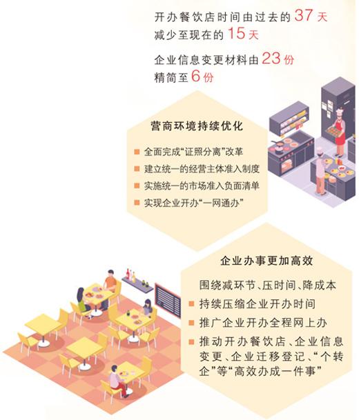 原先需要手動填寫的信息變?yōu)橄到y(tǒng)智能生成,申請人只需勾選和核對;表單的流轉從線下紙質層層傳遞,變?yōu)橄到y(tǒng)上動動手指就可辦理……餐飲“一件事”改革后,營業(yè)執(zhí)照實現(xiàn)了上午提交、下午出證,食品經(jīng)營許可證辦理時間也從20個工作日縮短到三四天。