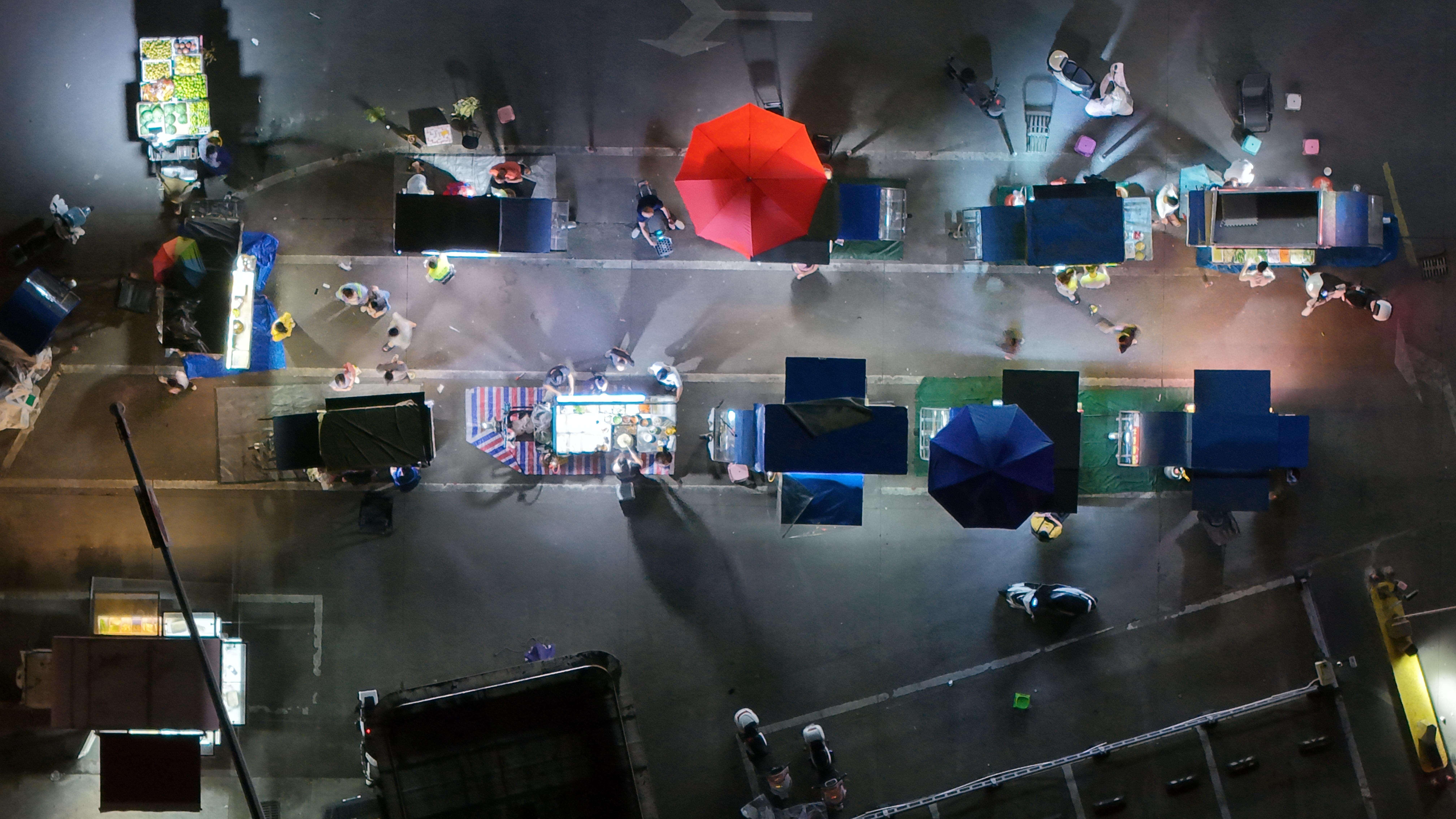 地塊的夜間閑置、城區(qū)內(nèi)居民的夜間零星用餐需求、流動攤販生計難問題,“堵點”與“出口”一拍即合,加上之前臨港產(chǎn)業(yè)園的治理經(jīng)驗,8月初,柴橋中隊依托“侖小城”普法平臺,聯(lián)合公安、市監(jiān)、街道職能科室等部門,對流動設攤攤主開展普法座談。針對部分攤主的合理設攤需求,中隊跳出“一刀切”治理思維,打好“時間差”,創(chuàng)新采用“空間置換”模式盤活約500平方米的場地資源。