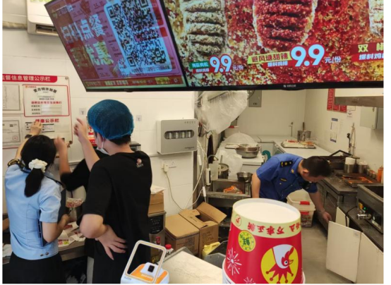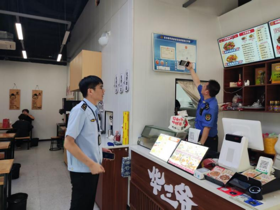 執(zhí)法隊督促商戶在加工區(qū)域安裝實時監(jiān)控設(shè)備,落實“明廚亮灶+互聯(lián)網(wǎng)”監(jiān)管模式。檢查中,執(zhí)法人員重點核查監(jiān)控覆蓋范圍、運行狀態(tài)及錄像保存時長,要求系統(tǒng)真實有效,確保消費者可通過平臺查看菜品制作過程。在經(jīng)營場所布局、食材儲存條件及加工流程方面,對衛(wèi)生不達標、操作不規(guī)范的商戶責(zé)令整改。