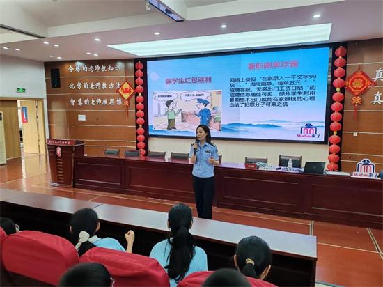 9月23日下午,“Madam來了”志愿團團長董黎娜走進姜山鎮(zhèn)中學(xué),為160名師生帶來新學(xué)期“平安第一課”。課程聚焦校園欺凌、防溺水、電信網(wǎng)絡(luò)詐騙三大主題,通過真實案例剖析、互動問答等形式,增強學(xué)生自我保護意識和法律意識。通過講師深入淺出地講解,同學(xué)們都積極參與安全知識問答,生動有趣的互動贏得師生廣泛好評。