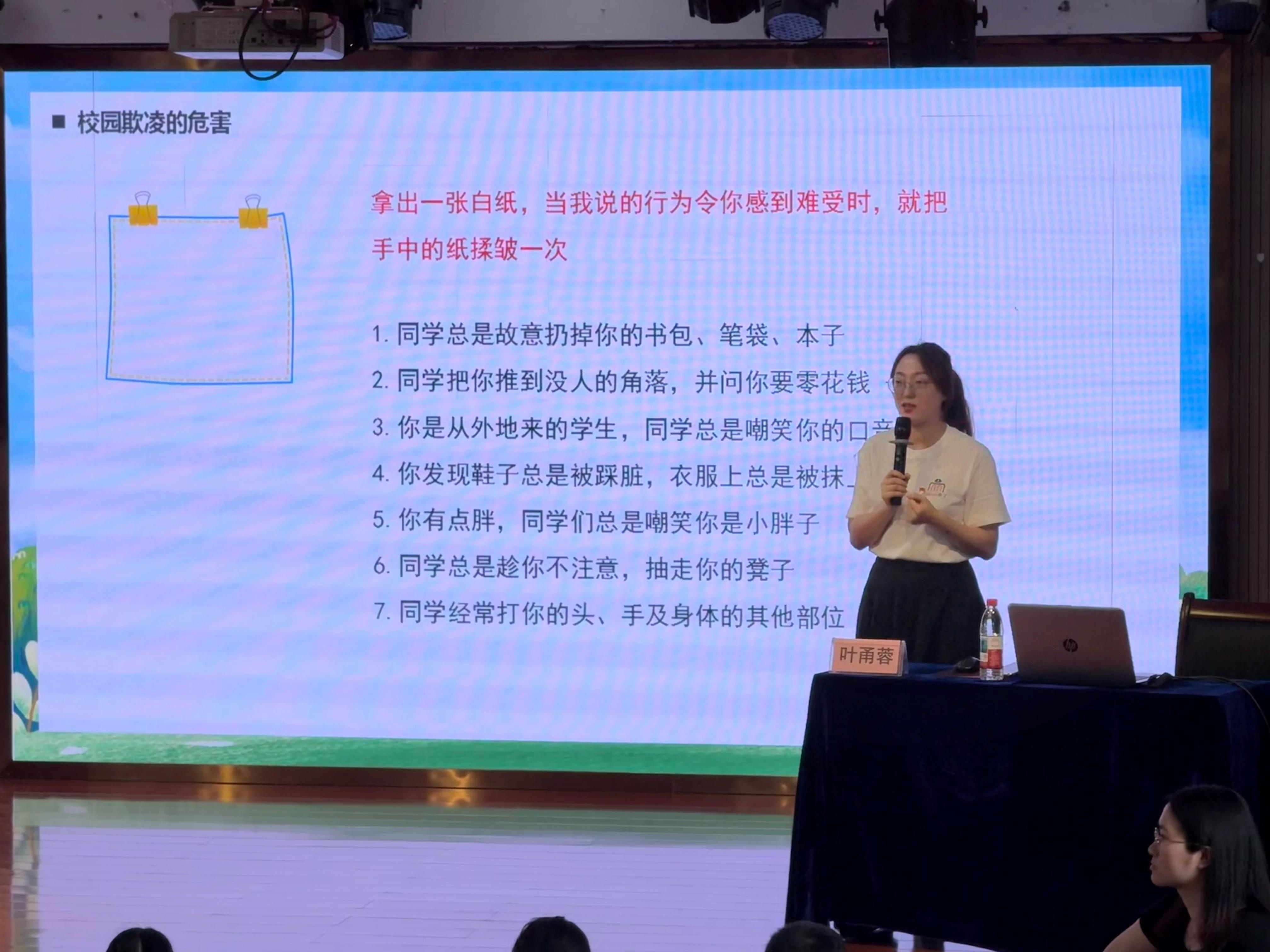 9月25日下午,鐘公廟中學(xué)420名師生也迎來了“平安第一課”。課程內(nèi)容緊扣初中生身心特點,講師董黎娜重點剖析校園欺凌的表現(xiàn)形式與應(yīng)對策略,同時結(jié)合季節(jié)特點強化防溺水教育,并針對當(dāng)前高發(fā)的電信網(wǎng)絡(luò)詐騙進行預(yù)警提示,幫助學(xué)生筑牢思想防線。9月26日,志愿團又走進天童小學(xué),為200余名小學(xué)生開展專題普法教育,講師葉甬蓉用通俗易懂的語言講解“什么是欺凌”“如何說不”,在孩子們心中播下法治與尊重的種子。