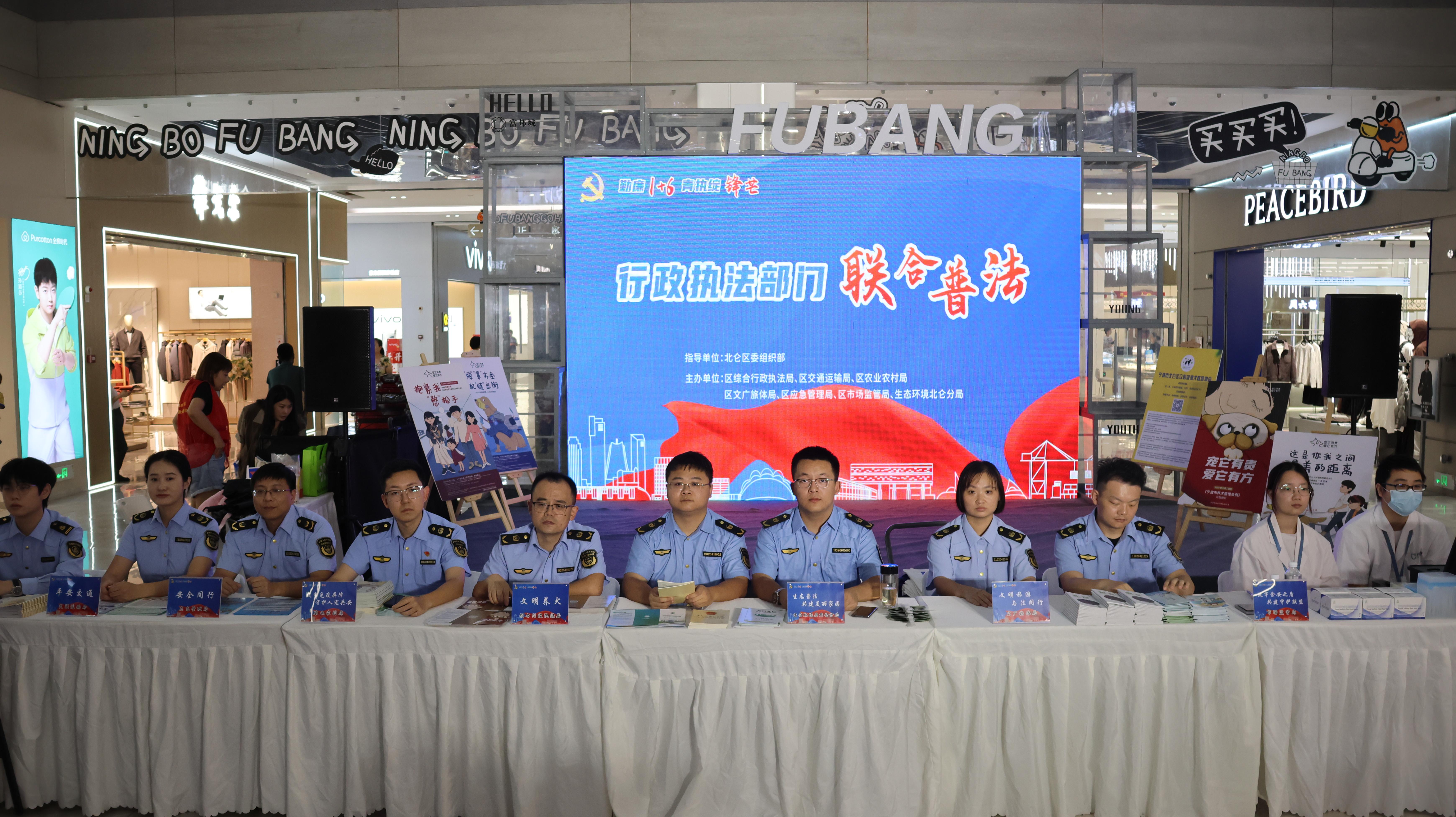 10月18日,浙江省寧波市北侖區(qū)行政執(zhí)法部門聯(lián)合普法活動(dòng)在北侖富邦商業(yè)廣場舉行,北侖區(qū)綜合行政執(zhí)法局、區(qū)交通運(yùn)輸局、區(qū)農(nóng)業(yè)農(nóng)村局、區(qū)文廣旅體局、區(qū)應(yīng)急管理局、區(qū)市場監(jiān)管局、生態(tài)環(huán)境北侖分局7家執(zhí)法部門參加,現(xiàn)場吸引300余名商鋪代表和市民參與。