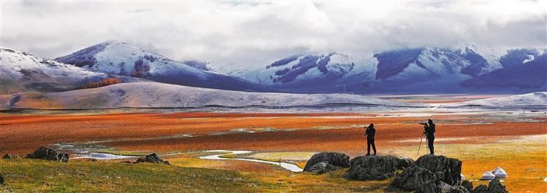 10月2日,新疆阿勒泰市托勒海特草原,雪山、河流、云海相映成景。 阿爾達克·拜斯汗攝(中經視覺)