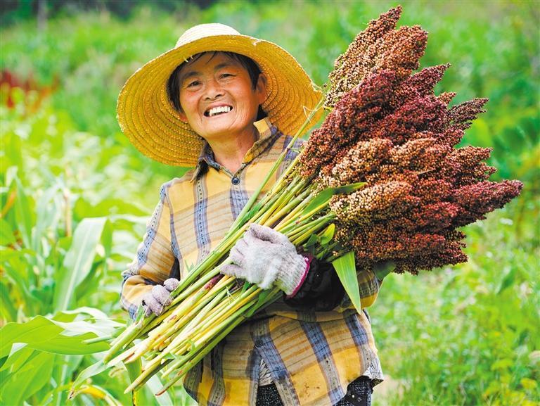 9月23日,安徽省黃山市黟縣西遞村,村民利用晴好天氣收獲高粱。 許家棟攝(中經視覺)