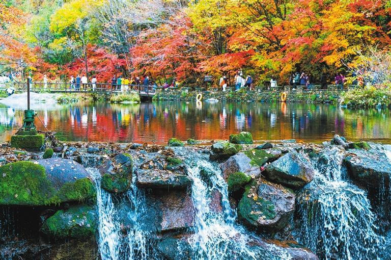 10月11日,游客在遼寧省本溪市大石湖景區(qū)觀賞紅楓。 何華文攝(中經視覺)