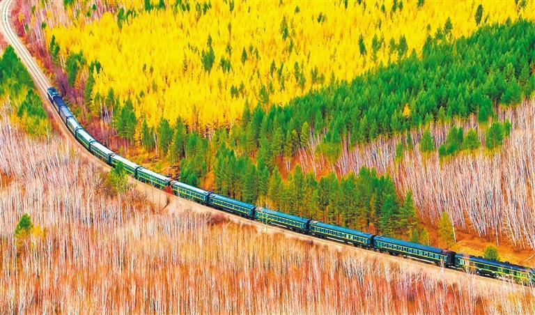 10月2日,黑龍江省大興安嶺漠河市九曲十八彎,金秋山林色彩斑斕。 孫立君攝(中經視覺)