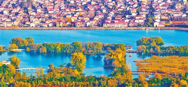 11月2日,深秋的安徽省淮北市烈山區(qū)烈山鎮(zhèn)榴園村層林盡染,金黃的石榴園與遠處的村莊相映成景。張偉 攝(中經視覺)