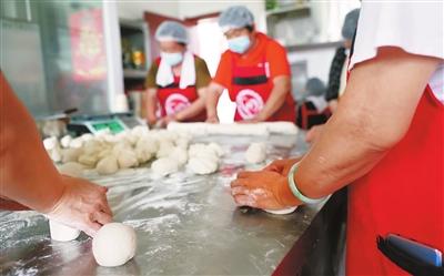 做完飯,志愿者全身都是汗水。