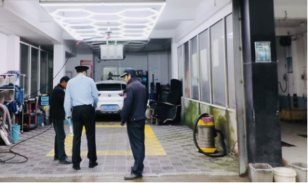 從源頭規(guī)范排水行為后,執(zhí)法人員進一步聚焦設(shè)備維護和作業(yè)流程?!跋窜噺U水必須經(jīng)過嚴格沉淀過濾方能排入市政管網(wǎng)?!眻?zhí)法人員強調(diào)。在后院檢查時,他們發(fā)現(xiàn)部分店鋪沉淀池長期未清掏,幾乎失去過濾功能,排水口也缺失防護網(wǎng)。“必須確保排出的每一滴水都‘清清白白’。”執(zhí)法人員一邊開具整改通知書,一邊演示過濾設(shè)備使用方法。針對兩家占道洗車、污水外流的店鋪,執(zhí)法人員現(xiàn)場教育:“污水流到路面上,不僅影響市容,還可能讓行人滑倒!”通過現(xiàn)場指導,執(zhí)法隊幫助商戶建立規(guī)范化操作流程,讓洗車作業(yè)從“隨意粗放”走向“精細可控”。